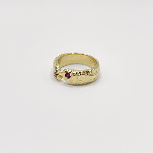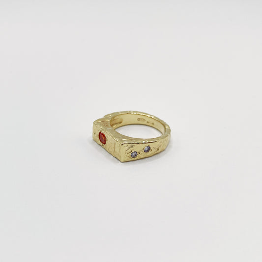 Diseño de anillos artesanales realizados en plata de ley reciclada con baño de oro de 18K inspirados en los atardeceres de la Costa del Sol
